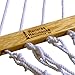 Embrace time for yourself away from it all with a novel and an ice cold glass of tea as you recline in a bed of sheer comfort. Tailor made for one, the Single Polyester Rope Hammock is a continuous woven bed of 100% 3-ply rope and is perfect where space is limited. One Thousand feet of rope is used in hammock construction for durable woven bed. Double-latch construction and 14 loops in body add more rope for greater comfort and strength. Hand-tied bowline knot tightens with use. Hammock clew is macrame for artistic design. Three-ply twisted rope reinforces bed strength while polyester rope resists mold and mildew. The Single Rope Hammock easily provides support for up to 340 lbs. Spreader bars are constructed of solid oak for premium durability and strength. Spreader bars are triple dipped in marine spar varnish to length life. Spreader design enhances gentle swaying motion. Hatteras Hammocks logo is branded on each spreader bar, representing strength and durability of Cape Hatteras Li Read more